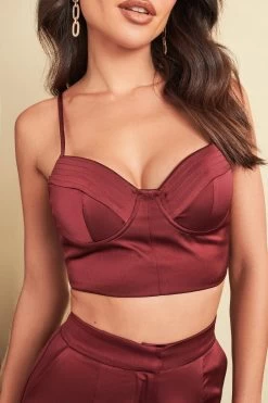 IRIS Bonded Satin Stitch Detail Bralette In Burgundy