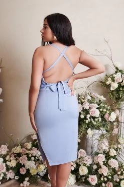 LILIANA Curve Cross Back Cowl Neck Midi Dress In Cornflower Blue