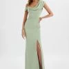 Expertly crafted from structured bonded satin in a stunning blue hue, this Asymmetric Pleated Satin Midi Dress boasts an alluring asymmetric one shoulder neckline and statement pleating for a bold and elegant look. Its asymmetric hemline and high split add a touch of drama, making it the perfect choice for any special occasion.
