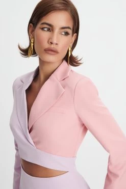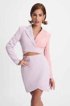 ELLIE Colour Block Blazer Wrap Mini Dress In Lilac & Pink