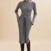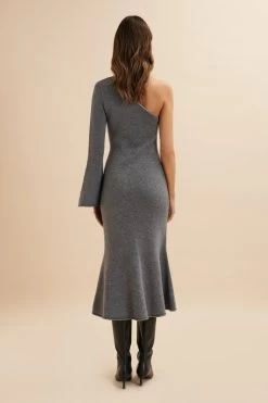 Expertly crafted from a wool blend enhanced with cashmere using luxurious yarn spinning techniques, the HUDA asymmetric midi dress offers a soft and comfortable fit. The knitted construction showcases skilled craftsmanship, while the one-shoulder neckline and fitted bodice accentuate the figure. With a fluted cuff and fishtail hem, this midi dress exudes elegance and sophistication.