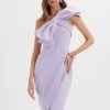 JULIA Pleated Bardot Midi Dress In Cornflower Blue