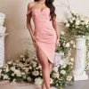 Expertly crafted with a luxury crepe fabrication, the JULIA dress exudes elegance and sophistication. The flattering pleat detailing and Bardot armbands accentuate the feminine sweetheart neckline, while the close to body fit and thigh high split add a touch of allure. Perfect for any occasion, this dress is sure to make a statement.