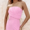 LILLY Extreme Ruffle Bardot Midi Dress In Rose Pink
