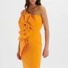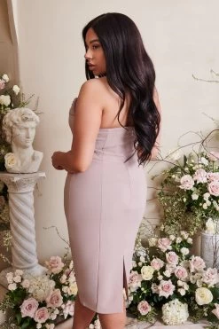 MARIA Curve Cowl Front Bandeau Midi Pencil Dress In Stone