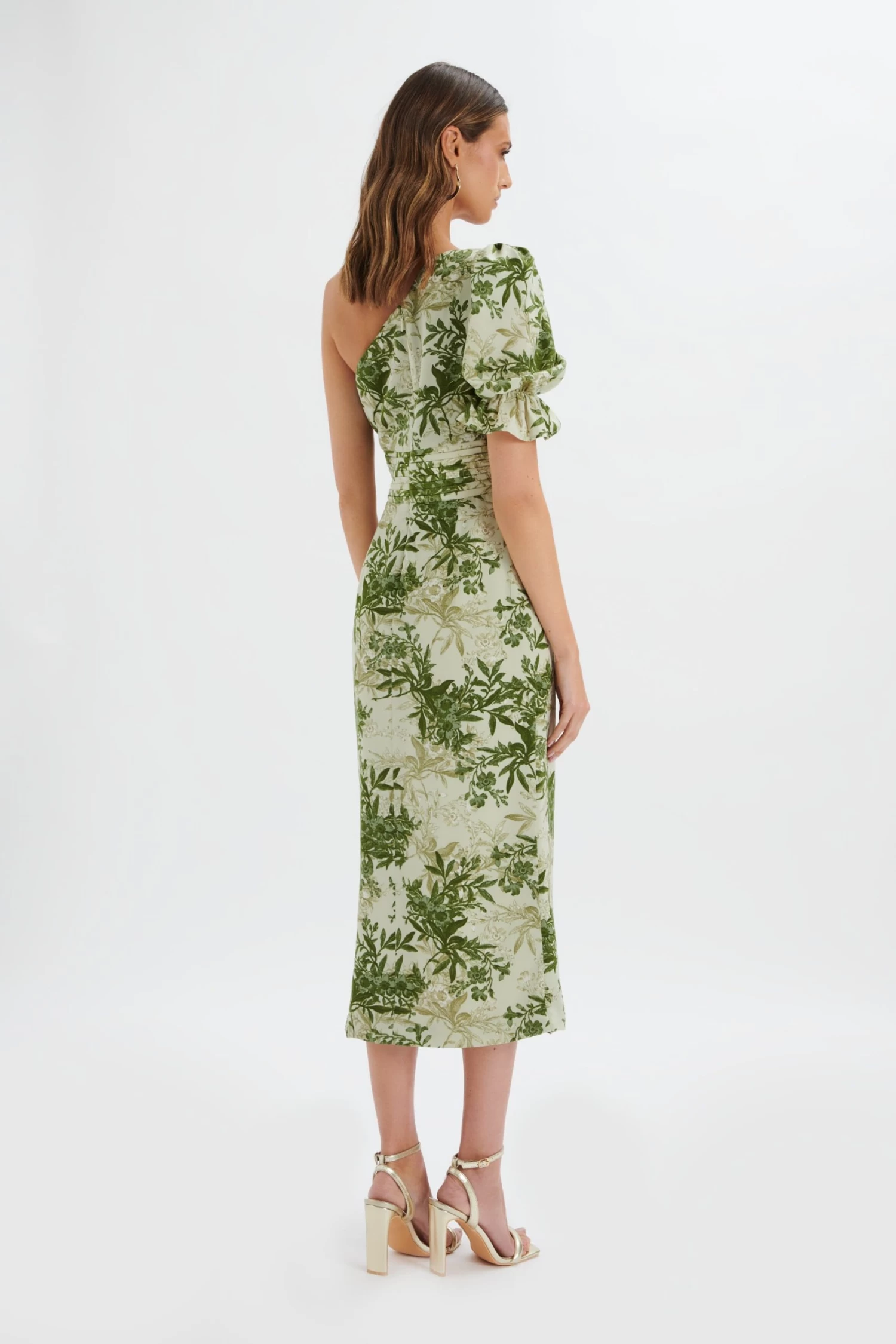 Incorporate floral elegance into your summer wardrobe with the NAKIA Asymmetric Puff Sleeve Midi Dress. Featuring an eye-catching botanical print and an asymmetric puff sleeve, this midi dress effortlessly combines style and comfort. The front split adds a touch of elegance, making it the perfect summer edition to your wardrobe.