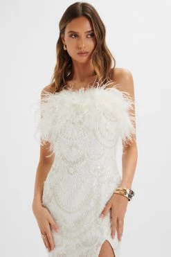 ORELIA Embellished Mini Dress With Feather Trim In White