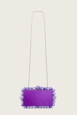 TIA Marbled Faux Pearl Box Clutch Bag In Purple