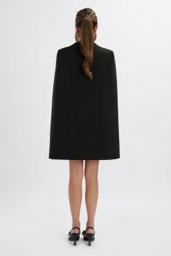 Elevate your style with the timeless and structured TIFFANY cape blazer dress. Crafted from high quality crepe and featuring princess seams and shoulder pads, this classic piece flatters your silhouette. The self-fabric belt cinches your waist while the double breasted concealed button fastening provides secure coverage.